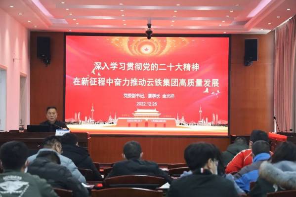 - 12月26日,公司黨委副書記、董事長金光祥為所在黨支部和聯(lián)系黨支部黨員宣講黨的二十大精神。金光祥結(jié)合自身學(xué)習(xí)體會,緊貼云鐵集團(tuán)發(fā)展實(shí)際,從黨…